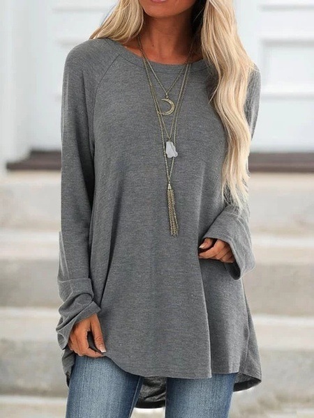 Round neck loose long sleeve pullover T-shirt
